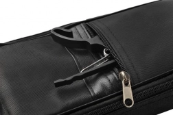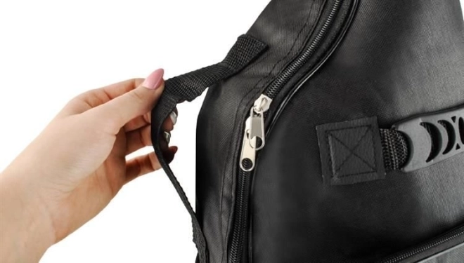 Dve predné vrecká: horné na drobnosti (trsátka, kapodaster, struny) a spodné na noty či zošity vo formáte A4.