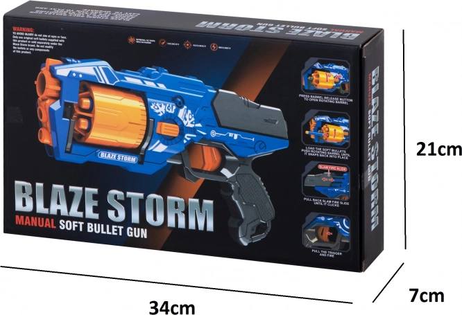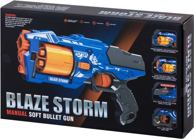 Rôzne detaily v podobe reliéfov a grafiky, vďaka ktorým hračka pripomína zbraň z počítačovej hry, ju robia atraktívnou pre deti rôzneho veku. Hračka poteší fanúšikov počítačových hier, ktorí môžu svoje potýčky preniesť do reálneho sveta a zároveň aj behať! Takáto hra vonku napomáha motorickej koordinácii a má pozitívny vplyv na fyzické zdravie vášho dieťaťa. Pištole vás povzbudí k aktívnemu tráveniu voľného času vonku. Blaze Storm je veľká hračka, ktorá vášmu dieťaťu poskytne hodiny zábavy. Napriek svojej veľkosti nie je ťažká, takže jej ovládanie zostáva jednoduché a zábavné. Hračka poskytuje značnú výhodu nad súperom. Strieľa nielen rýchlo a presne, ale aj na veľkú vzdialenosť. Pušky nevyžadujú batérie. Stačí naplniť bubnový zásobník šípkami, nabiť zbraň vytiahnutím záveru späť a vystreliť.