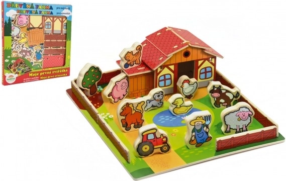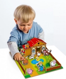 Táto drevená farma je ideálna pre malé deti od 3 rokov. Na drevenej podložke o rozmere 31 x 31 cm je možné farmu jednoducho zostaviť, čo vytvára perfektný domček na hranie plný zvieratiek. Skladá sa z 28 dielikov, ktoré ponúkajú nekonečné možnosti pre imaginatívnu hru.