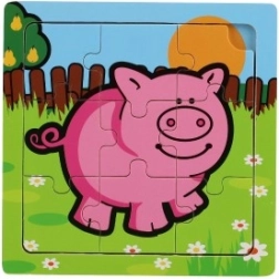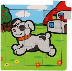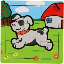 Puzzle je vyrobené z kvalitného dreva, ktoré poskytuje trvanlivosť a príjemný pocit pri manipulácii. Deväť kúskov je umiestnených na drevenej doske s vyfrézovaným okrajom, čo uľahčuje skladanie a pomáha udržať kúsky na mieste.