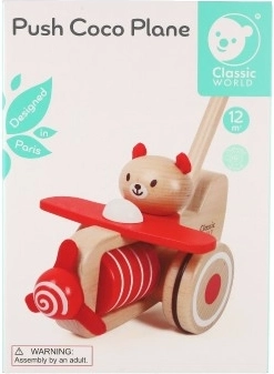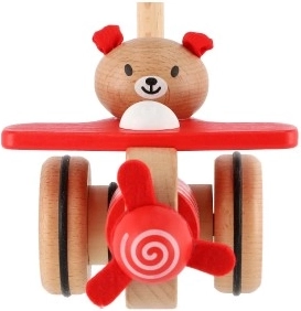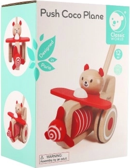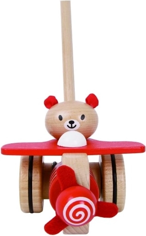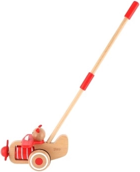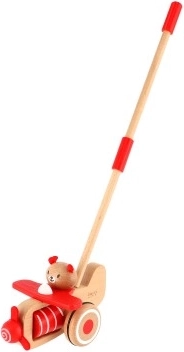 Tlačiace lietadlo drevené 55cm tlačiace s tyčou v krabici 20x28x13cm 12m+