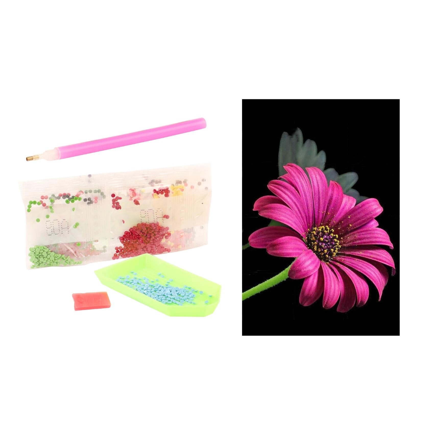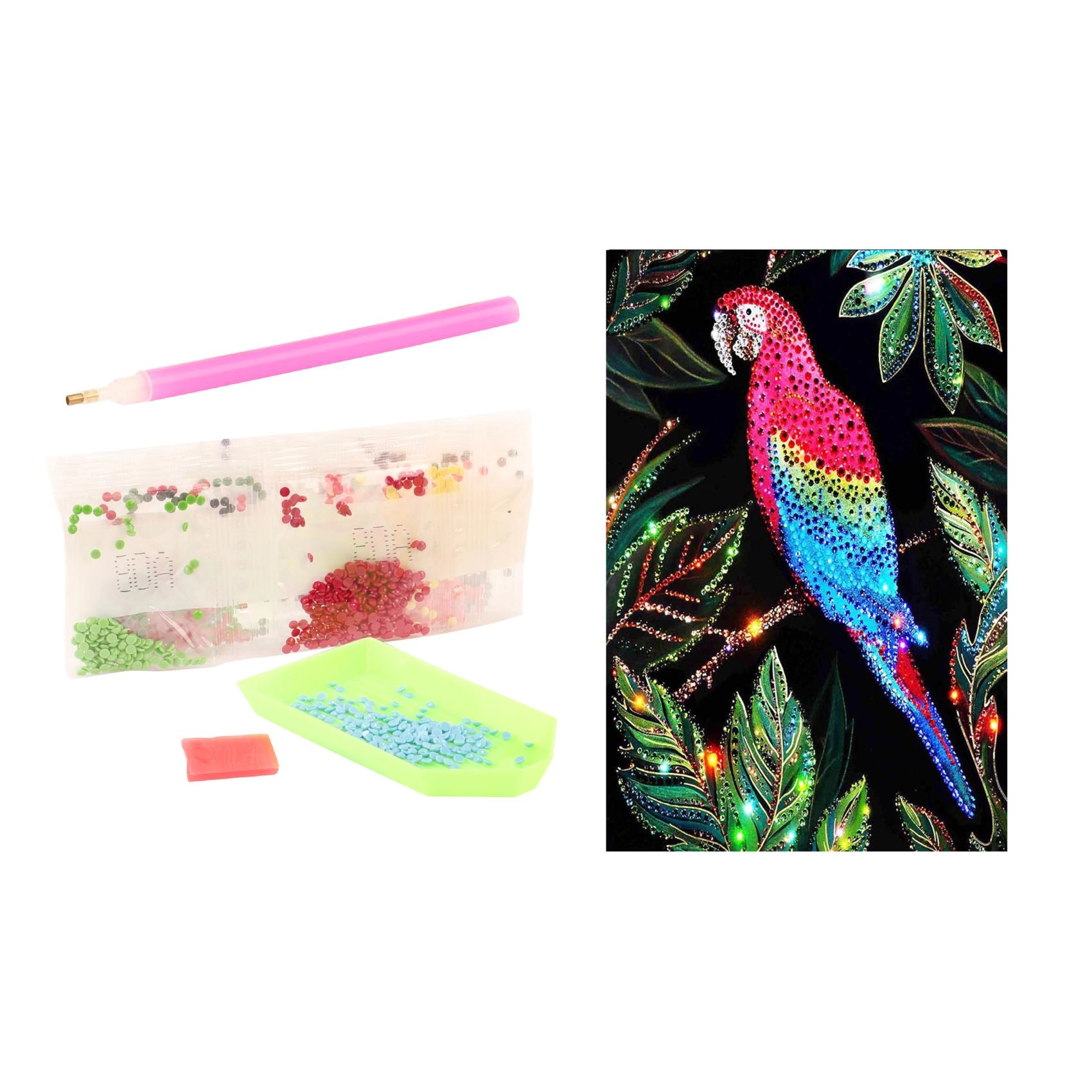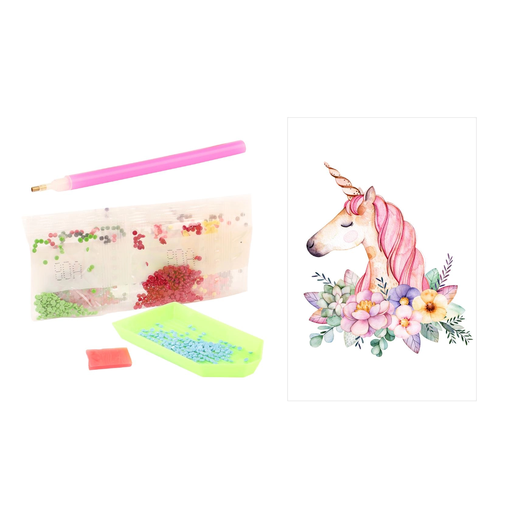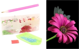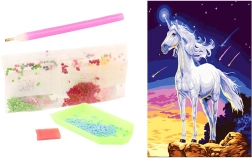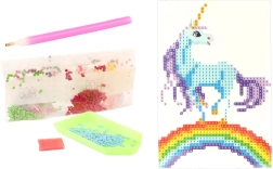 V balení nájdete všetko, čo na tvorenie potrebujete: aplikátor (pero), voskový vankúšik na ľahké naberanie kamienkov, podnos na triedenie a vrecúška s farebnými kamienkami. Sada je vhodná pre deti od 5 rokov a podporuje trpezlivosť, jemnú motoriku a sústredenie.
