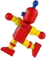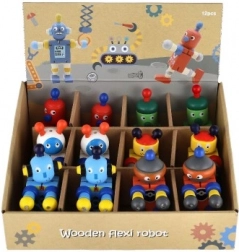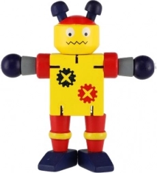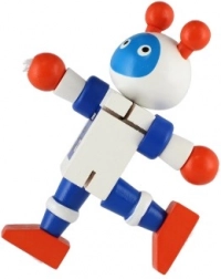 Roztomilý drevený robot s veľkosťou 12 cm poteší každého malého objaviteľa. Vďaka pružným gumičkám má pohyblivé končatiny aj hlavu, takže ho deti ľahko posadia, postavia či rôzne naaranžujú. Hračka podporuje jemnú motoriku, kreativitu a fantáziu. Vhodné od 18 mesiacov.