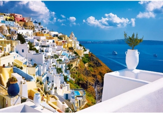 Vychutnajte si atmosféru Egejského mora s detailne spracovaným motívom ostrova Santorini. Táto skladačka od značky TREFL prináša presné tvary dielikov, sýte farby a motív, ktorý vynikne v každom interiéri. Po poskladaní vznikne obraz s rozmermi približne 85 × 58 cm, ktorý si môžete zarámovať.