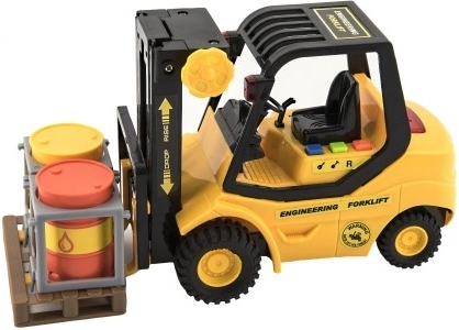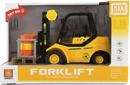 Plastový vysokozdvižný vozík 23 cm na zotrvačník s batériou. so zvukom a svetlom v krabici 29x19x12cm