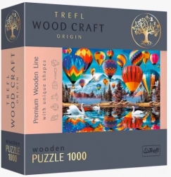 Objavte prémiové drevené puzzle TREFL z radu Wood Craft Origin s motívom pestrých horúcovzdušných balónov nad jazerom s labuťami. Vďaka laserovo presnému výrezu majú dieliky hladké okraje a perfektne do seba zapadajú. Puzzle je obojstranné, obsahuje unikátne tvarované dieliky a prichádza v ekologickom balení bez plastov – ideálna voľba pre náročných milovníkov skladania aj ako darček.