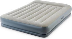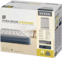 Dvojlôžkový nafukovací matrac INTEX s technológiou Dura-Beam Fiber-Tech ponúka pevnú oporu, komfortný velúrový povrch a rýchle nafúknutie aj vyfúknutie vďaka vstavanej elektrickej pumpe približne za 3 minúty. Ideálny ako pohodlné lôžko pre hostí, do domu aj kempu, s nosnosťou až 272 kg a jednoduchým skladovaním.