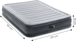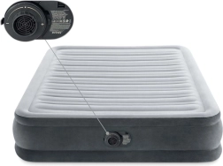 Nafukovacia matrac INTEX je ideálna ako pohodlné prístelkové lôžko pre hostí aj na kempovanie. Integrovaná pumpa na 220–240 V zaistí rýchle nafúknutie za cca 4,5 minúty aj automatické vyfúknutie bez námahy. Velúrový povrch je mäkký na dotyk, zatiaľ čo odolné PVC prináša vysokú životnosť a jednoduchú údržbu.