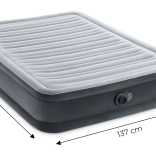 Praktická nafukovacia posteľ pre dve osoby s rozmermi 191 × 137 × 33 cm a integrovanou elektrickou pumpou na rýchle nafúknutie aj vyfúknutie. Ponúka pevnú oporu chrbtice vďaka technológiám Fiber-Tech a Dura-Beam, je z odolného PVC s príjemným velúrovým povrchom, unesie až 272 kg a súčasťou je transportná taška aj opravná záplata.