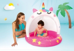 Bazénik v tvare rozkošného jednorožca premení vašu záhradu na čarovné miesto pre vodné hry. Vďaka integrovanému prístrešku deti získajú príjemný tieň a môžu si užívať osvieženie aj počas horúcich dní. Praktické prevedenie a hravý dizajn lákajú k objavovaniu aj jemnému čľapkaniu.