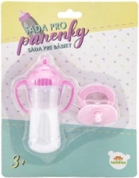 Súprava pre bábiky obsahuje fľašku a cumlík, čo je ideálne na učenie vašej bábiky. Perfektný darček pre každé dieťa!