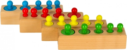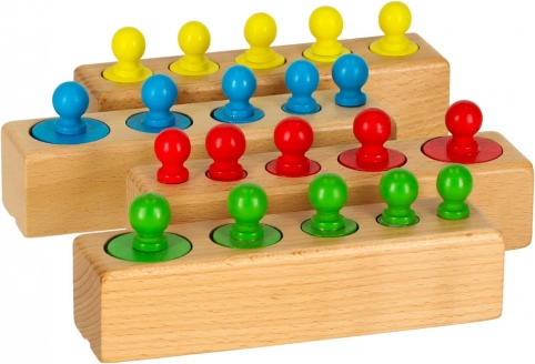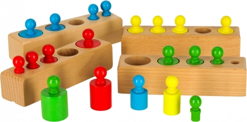 Drevená montessori skladačka – farebné valce a závažia