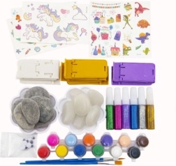 Táto kompletná sada na maľovanie na kamene prináša hodiny tvorivej zábavy. V balení nájdete 12 kameňov, z ktorých 6 svieti v tme, a bohaté príslušenstvo na zdobenie a personalizáciu. Ideálne ako darček, na domáce tvorenie aj školské projekty.