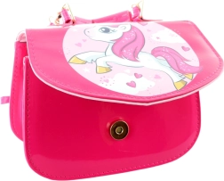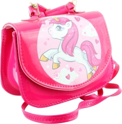 Táto ružová kabelka s roztomilým jednorožcom je perfektným doplnkom na každodenné nosenie aj špeciálne príležitosti. Lesklý povrch, zlaté kovové detaily a hravá potlač z nej robia štýlový kúsok, ktorý deti milujú.