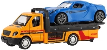 Malé, ale výkonné odťahové vozidlo s autíčkom poteší každého malého vodiča. Vďaka mechanizmu na spätný chod sa vozidlá svižne rozbehnú, kovovo–plastové prevedenie zaručuje odolnosť a detailné spracovanie a kompaktný rozmer 11 cm je ideálny na hranie doma aj na cestách.