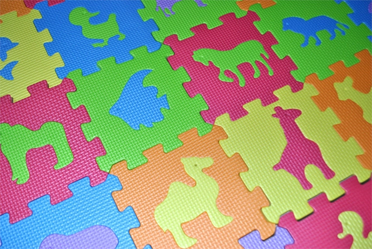 Penové puzzle zvieratká. Farebné podlahové puzzle pre deti je omyvatelné a zdravotne nezávadné. Rozmer 87x87 cm, hrúbka 0,7 cm.