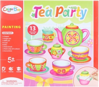 Navrhni a vyfarbi si svoj vlastný keramický čajový set. Obsahuje kanvičku, hrnčeky s podšálky, džbánik a cukorničku, s farbičkami a štetcom. Ideálne pre kreatívne deti od 5 rokov.