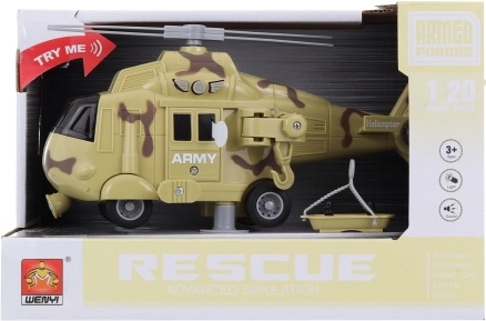 Po stlačení tlačidla helikoptéra vydáva zvuky a osvetľuje sa, čo výrazne prispieva k realistickému hernému zážitku. Ten je podporený aj priloženými batériami typu AG13/LR44, ktoré sú súčasťou balenia.