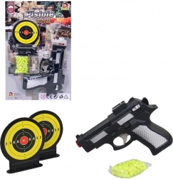 Táto pištoľ na guličky je perfektná hračka pre malých strelcov, ktorí radi trénujú svoju mušku. Vďaka dvom priloženým terčom môžu deti súťažiť s kamarátmi alebo sa zlepšovať samy. Ľahká a jednoducho ovládateľná konštrukcia z plastu podporuje bezpečnú a zábavnú hru.
