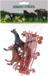 Plastové zvieratká – koníky s ohradou. Balenie obsahuje 4 kone a 4 časti ohrady. Rozmery balenia cca 15 × 25 × 5 cm. Rozmer zvieratiek cca 10 cm (podľa druhu). Vek 3+