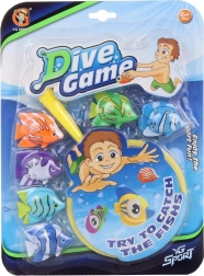 Hračka pre vodnú zábavu - Chytanie rybičiek obsahuje 6 plastových rybičiek a sito, ideálna pre plavecký a potápačský tréning.
