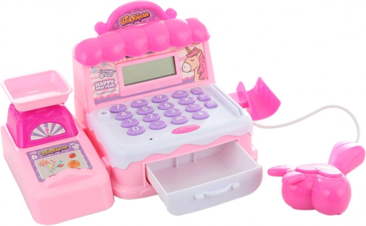 Veselá ružová pokladňa s jednorožcom premení každý detský kútik na malý obchodík. Deti môžu skenovať „tovar“, vážiť, počítať a bezpečne ukladať zarobené peniažky do šuplíka. Reálne zvuky, svetlá a displej dodajú hre na vierohodnosti a podporia prirodzené učenie čísel a jednoduchého počítania.
