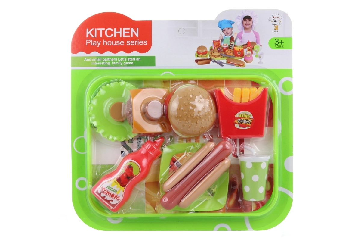 Táto hracia sada fastfoodu poteší všetkých malých milovníkov varenia a obsluhy. Hamburger možno ľahko rozložiť na jednotlivé prísady (žemľa, šalát, fašírka, syr, paradajka, majonéza), takže si deti môžu skladať vlastné „menu“ a rozvíjať fantáziu aj zručnosti.
