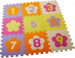 Farebné penové puzzle s číslicami a vyberateľnými dielikmi vytvára mäkkú a bezpečnú hraciu podložku pre deti od 3 rokov. Diely s rozmerom 28 × 28 cm sa ľahko spájajú, majú ryhovaný protišmykový povrch, sú umývateľné, tlmia hluk a izolujú od chladu. Balenie obsahuje 9 štvorcových dielov.
