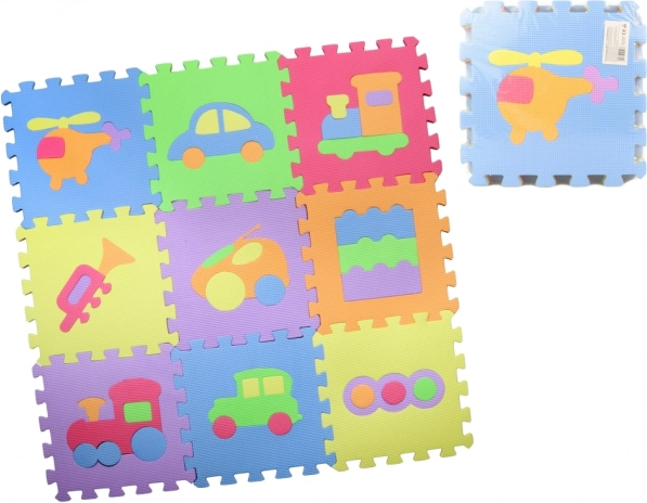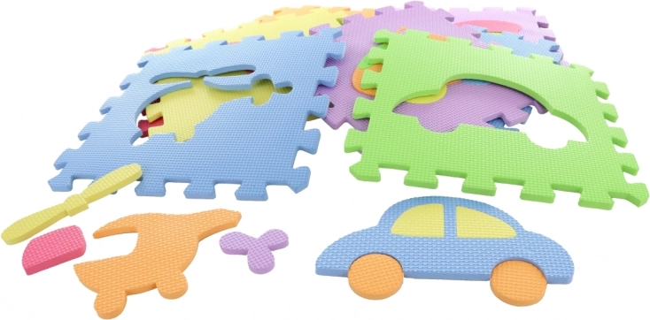 Pěnové podlahové puzzle s vyberateľnými tvarmi 28 × 28 cm, sada 9 ks