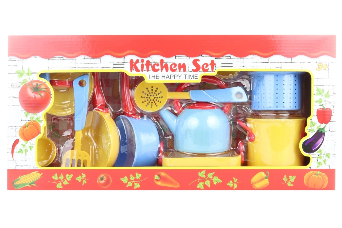 V sade nájdete kanvicu, hrniec, sito, rajnica, panvicu, pokrievku a ďalšie doplnky, ktoré podporia kreatívnu hru a rozvoj jemnej motoriky. Ideálne pre deti od 3 rokov.