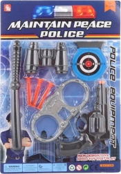 Staňte sa malým strážcom poriadku s touto kompletnou policajnou sadou! Balenie ponúka plastovú pištoľ na prísavky, 3 náboje s prísavkou, ďalekohľad, obušok, terč a putá – všetko ideálne na bezpečné a kreatívne hranie detí od 3 rokov.
