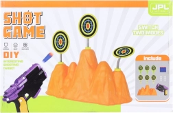 Stojan s viacerými terčmi ponúka rôzne úrovne náročnosti a možnosť hrať na čas alebo na počet zásahov. Vďaka kompaktným rozmerom sa hra hodí do detskej izby, na záhradu aj na cesty.