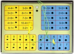 Táto náučná hračka je ideálnou pomôckou pre predškolákov a mladších školákov. Funguje na jednoduchom princípe: dieťa priloží jeden kontakt k vybranému príkladu a druhý k výsledku – ak je výpočet správny, rozsvieti sa kontrolka. Učenie sa tak mení na zábavnú a motivujúcu hru, ktorá podporuje samostatnosť a sebadôveru pri počítaní.