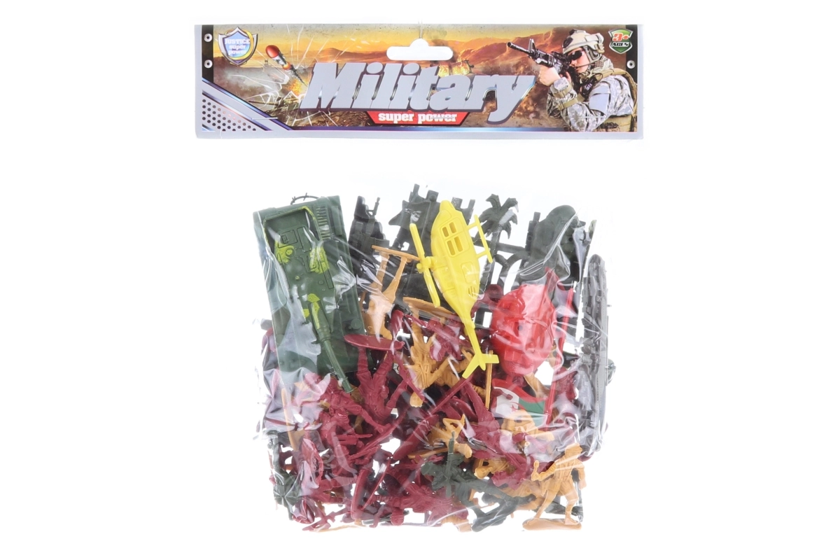 Zábavná sada pre malých stratégov: dve farebné armády vojačikov s výškou cca 5 cm, tank, vrtuľník, opevnenie a ďalšie doplnky. Ideálne na kreatívnu hru a rozvoj fantázie detí od 3 rokov. Kompaktné balenie v sáčku uľahčí skladovanie aj prenášanie.