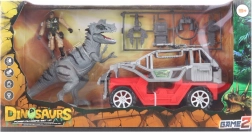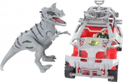 Táto sada obsahuje sivého dinosaura, terénne auto a figúrku v armádnom oblečení pre ultimátny herný zážitok.