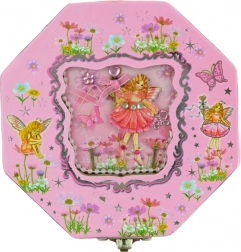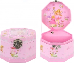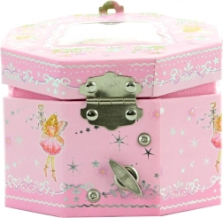 Táto pôvabná hudobná šperkovnica v ružovom prevedení s rozprávkovými motívmi je perfektným miestom na uloženie prstienkov, náušníc a ďalších drobností. Po otočení kľúčika sa baletka ladne otáča pred zrkadielkom a skrinka prehrá nežnú melódiu.