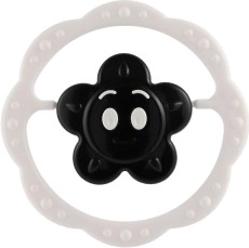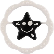 Textúrované okraje fungujú ako jemné hryzátko na upokojenie podráždených ďasien. Kontrastný motív hviezdy/kvetu uprostred zaujme aj veľmi malé deti, ktoré ešte trénujú zaostrovanie. Hračka je vyrobená z kvalitného plastu a je vhodná na každodenné používanie doma aj na cestách.