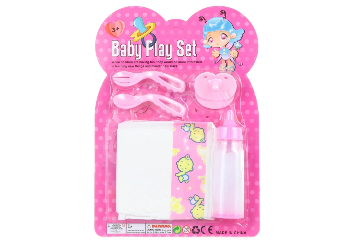 Praktická sada doplnkov pre bábiky prináša všetko, čo malí opatrovatelia potrebujú na každodennú hru. Obsahuje fľaštičku na pitie, plienku, cumlík a príbor. Kompaktné balenie je ideálne na doma aj na cesty a rozvíja fantáziu a starostlivosť detí. Vhodné pre deti od 3 rokov.