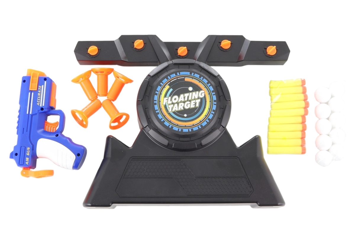 Základňa s levitujúcimi terčmi, pištoľ na penové náboje, loptičky/terče