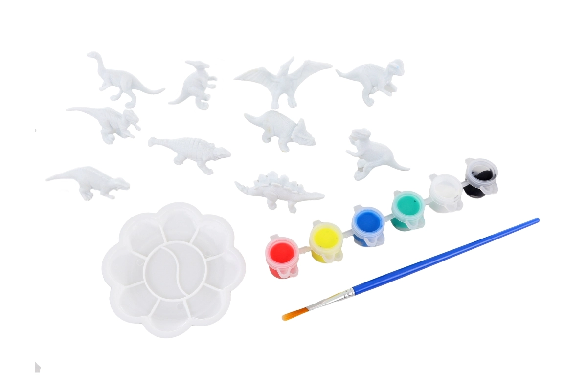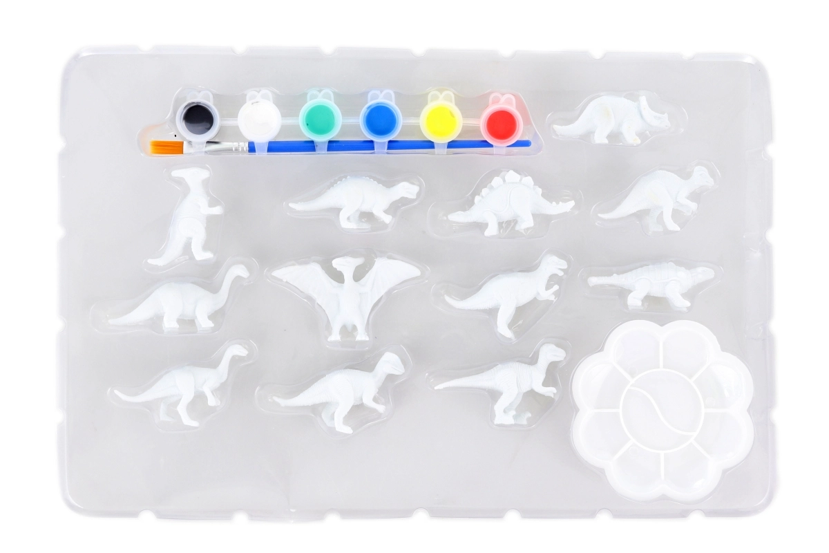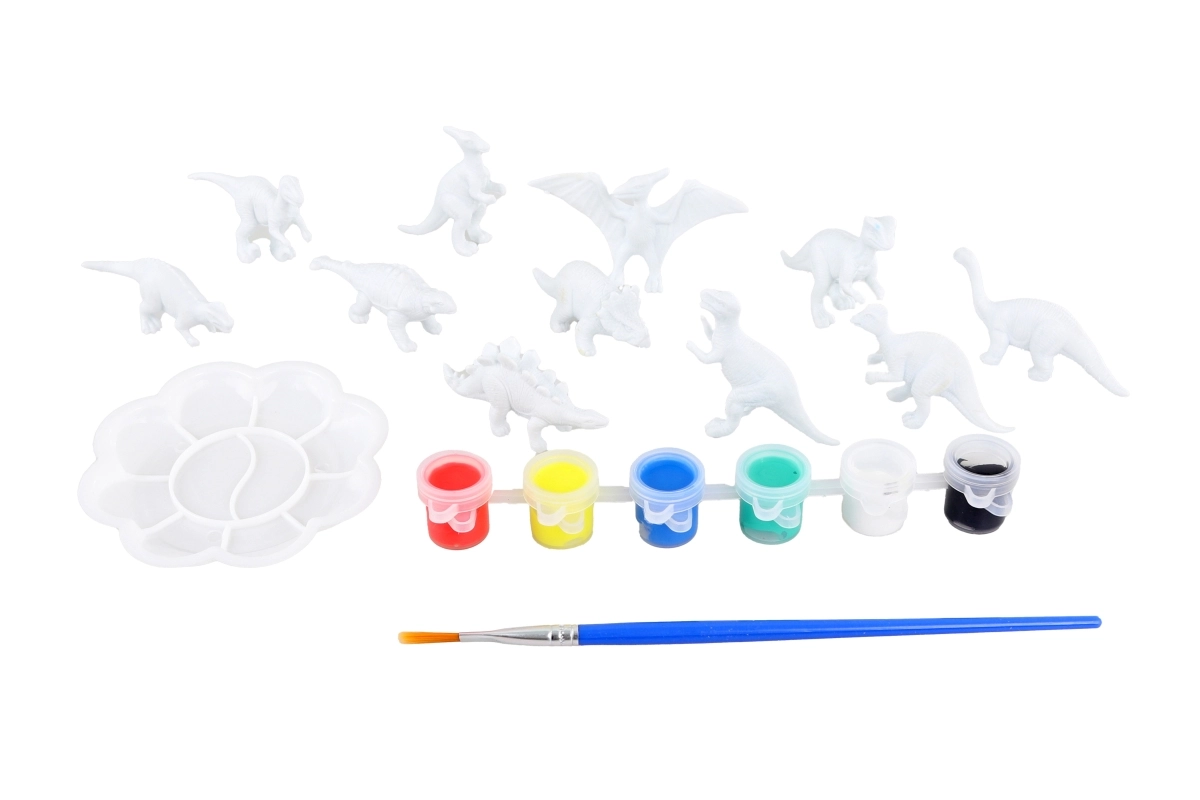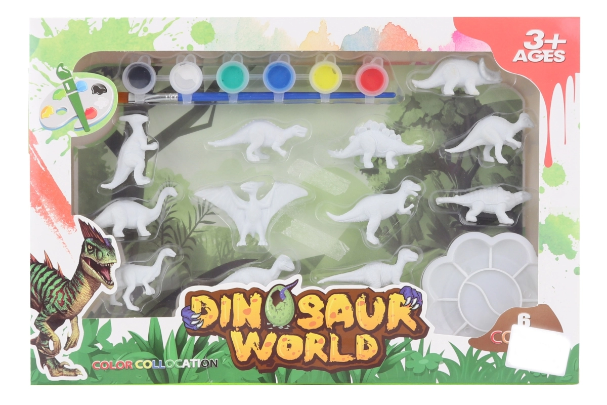 Sada obsahuje 3D dinosaury, 6 farieb, štetec a paletu – deti môžu začať tvoriť okamžite bez dokupovania pomôcok.