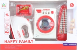 Objavte zábavnú detskú sadu domácich spotrebičov Happy Family, ktorá deťom priblíži svet domácich prác formou hry. Set obsahuje práčku, žehličku, žehliacu dosku a kôš na bielizeň. Realistické prvky, svetlá a zvuky podporujú rozvoj predstavivosti a role-play. Ideálne pre deti od 3 rokov.