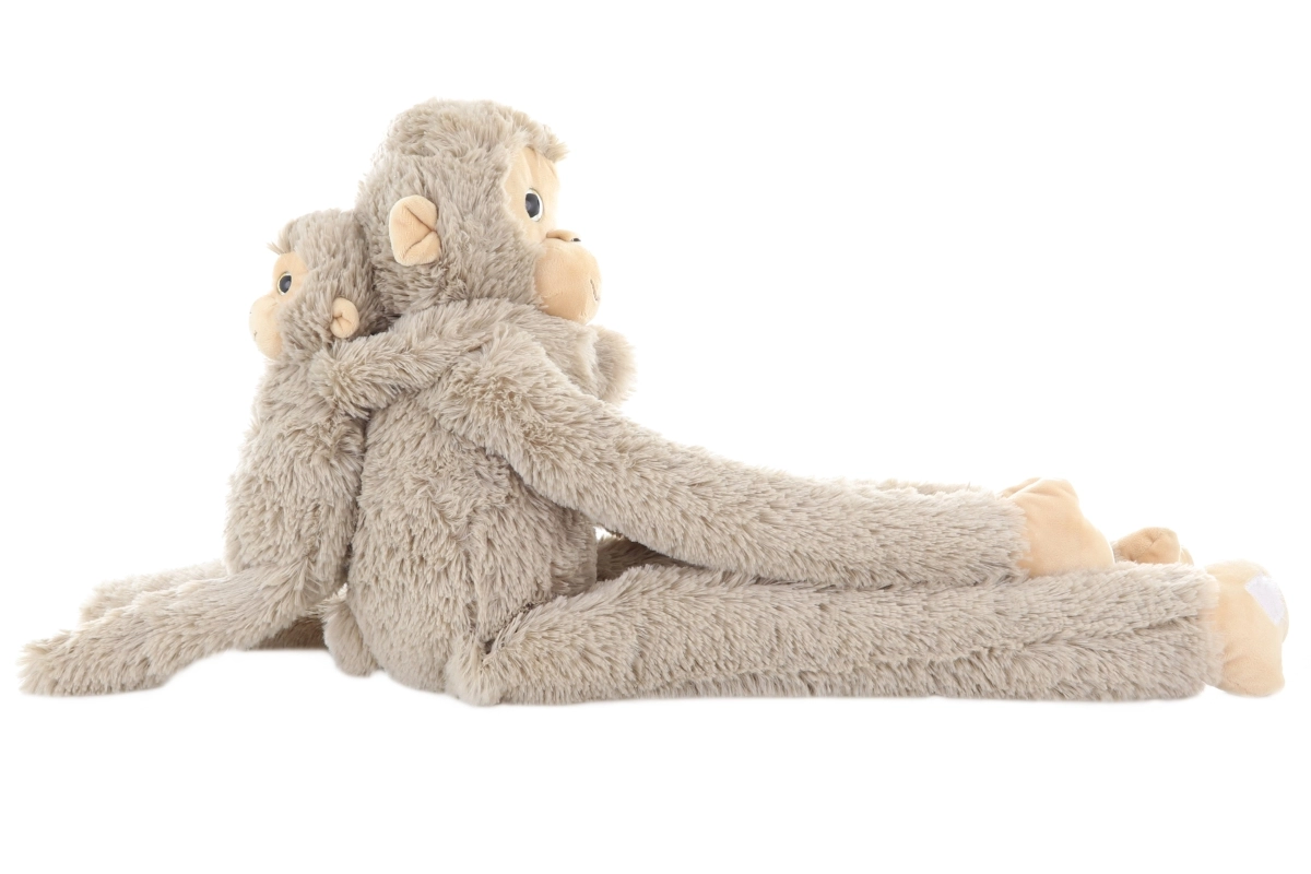 Roztomilá plyšová opica s odnímateľným mláďaťom je ideálny maznáčik pre deti už od narodenia. Vďaka extra dlhým končatinám a suchému zipsu na rukách sa ľahko objíme okolo dieťaťa, postieľky či kočíka. Hebké mäkučké prevedenie zaručí pohodlie pri mojkaní aj zaspávaní a odnímateľné mláďa podporí fantáziu pri spoločnom hraní.