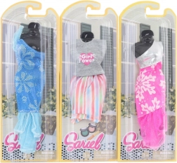 Doprajte svojej bábike nové šaty z kolekcie SARIEL! Štýlové šatičky v mixe farieb a vzorov majú približné rozmery cca 18 × 5 cm (podľa druhu) a sú balené v plastovom obale. Fotografia je ilustratívna; farebné prevedenie dodávame podľa skladových zásob.
