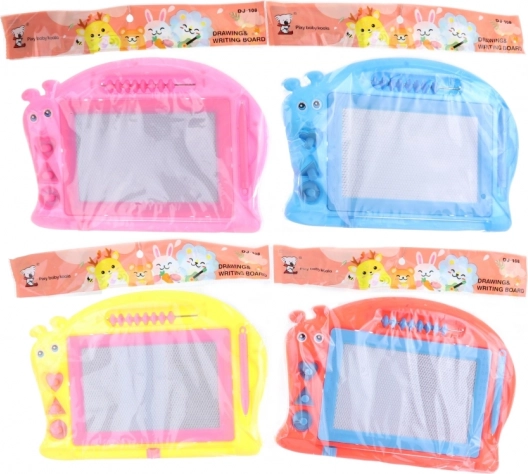 Zábavná plastová kresliaca tabuľka v tvare slimáka poteší všetkých malých umelcov. Ponúka jednoduché kreslenie a mazanie pomocou priloženého pera, podporuje jemnú motoriku a kreativitu. Ideálna na cesty aj domov, s kompaktnými rozmermi a bezpečným prevedením pre deti od 3 rokov.