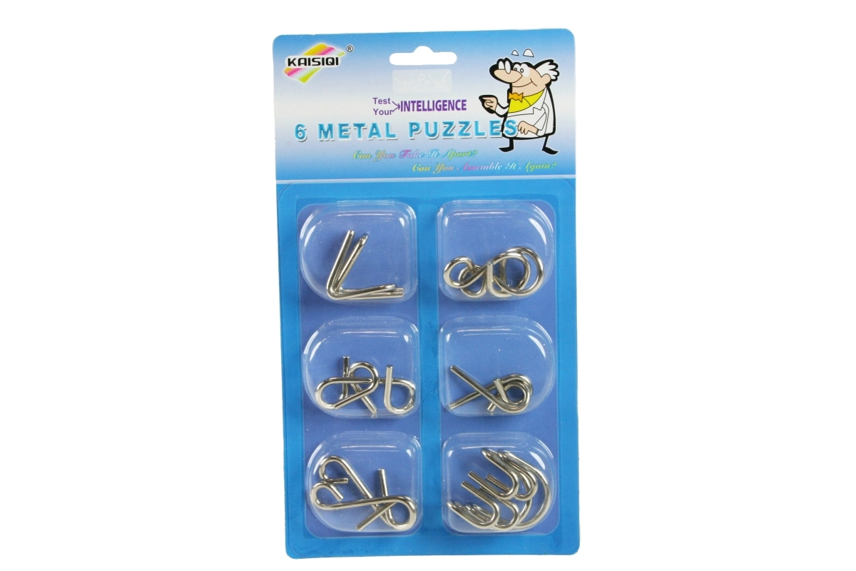 Táto sada kovových hlavolamov ponúka šesť rôznych úloh v odolnom kovovom prevedení. Vďaka kompaktnej veľkosti sa zmestia do batohu aj kabelky, takže máte chytrú zábavu vždy poruke. Perfektná voľba na rozvoj logického myslenia a jemnej motoriky.