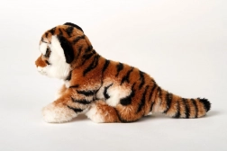 Plyšový hnedý tiger s veľkosťou cca 25 × 19 × 11 cm (bez chvosta). Dĺžka chvosta cca 12 cm. Vek 0+