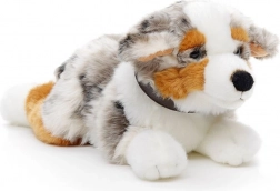 Roztomilý plyšový psík plemena Austrálsky ovčiak v polohe ležmo poteší deti aj milovníkov zvierat. Je mäkký, hebký a vďaka vyhotoveniu eco-friendly šetrný k prírode. Ideálny na túlenie, hranie aj ako dekorácia do detskej izby.