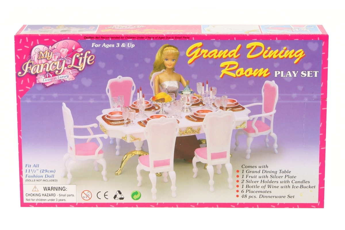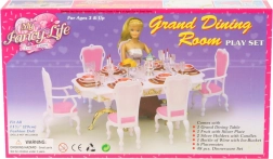 Štýlová sada Glorie pre bábikovské stolovanie premení každý detský izbičku na elegantnú jedáleň. Obsahuje veľký plastový stôl, 6 stoličiek (2 s opierkami rúk) a bohaté prestieranie stola vrátane pohárov, tanierov a príborov. Ideálne pre kreatívnu hru detí od 3 rokov.