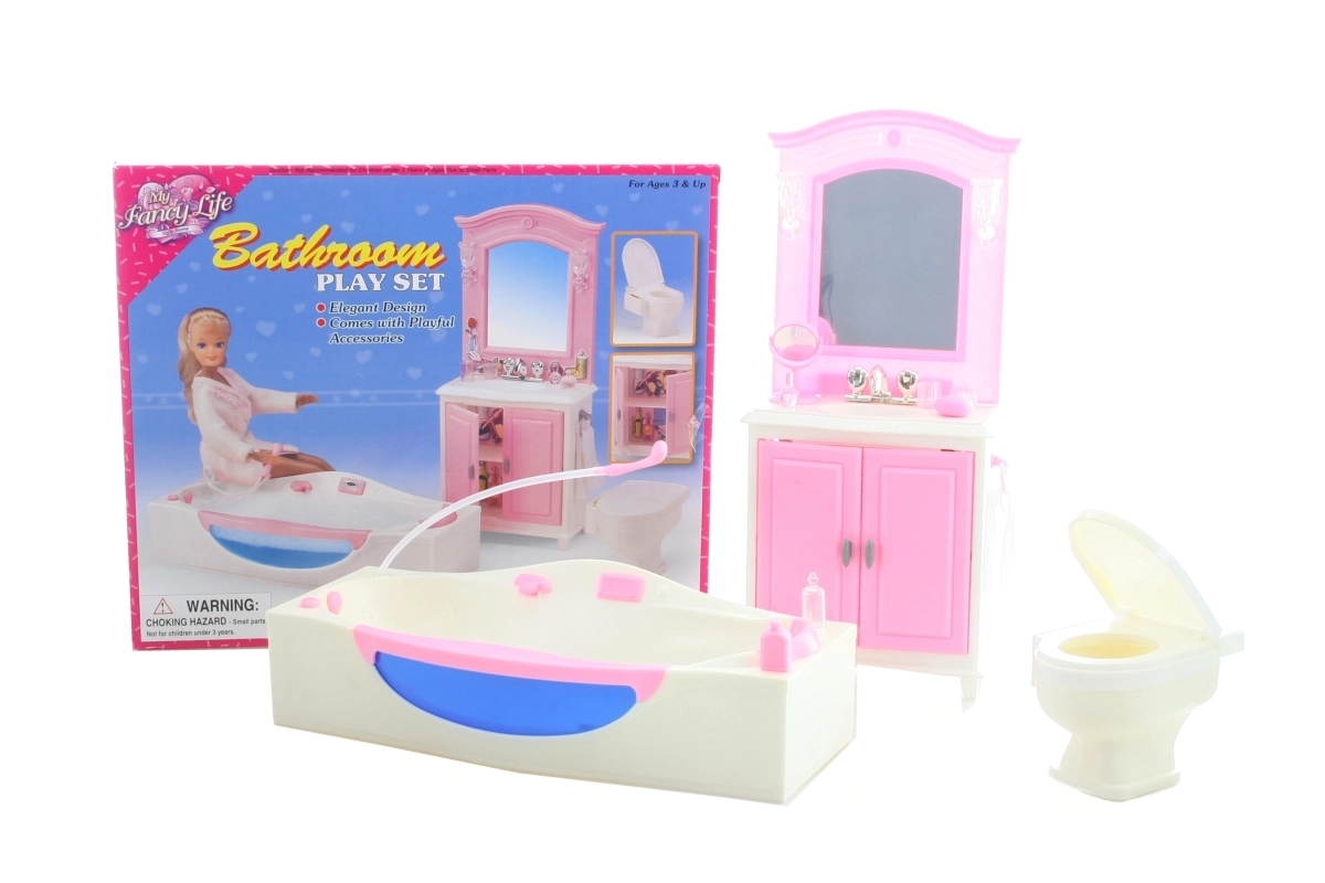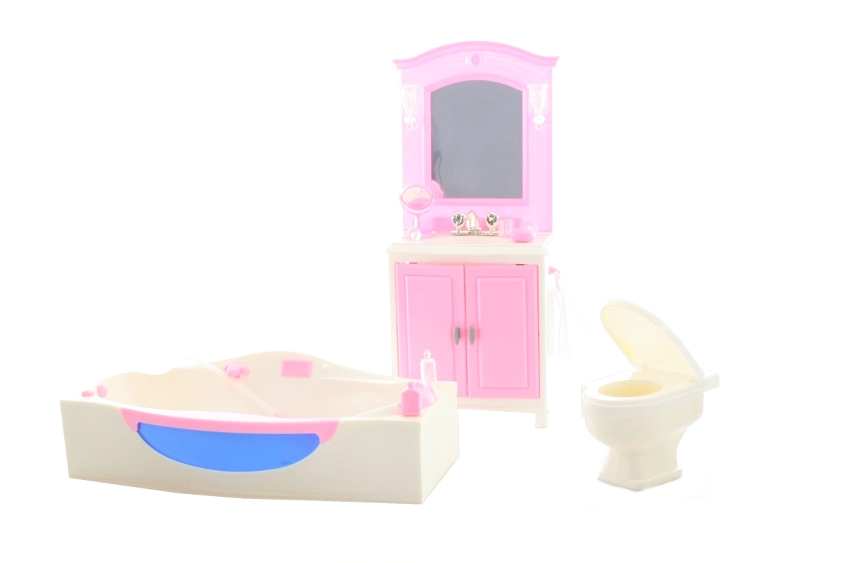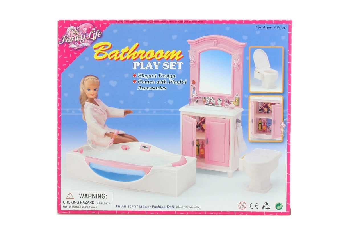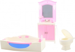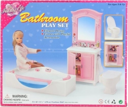 Obsah balenia zahŕňa toaletný stolík s umývadlom, vaňu a toaletu, rovnako ako malé doplnky, ktoré dotvárajú atmosféru skutočnej kúpeľne. Plastové prevedenie zaisťuje jednoduchú údržbu a dlhú životnosť pri každodennom hraní.