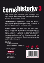 Čierne historky 3 prinášajú ešte temnejšie, morbídnejšie a zábavnejšie príbehy, ktoré pobavia aj potrápia vaše mozgové závity. Jeden hráč pozná celý prípad, ostatní sa pomocou otázok, dedukcie a logiky snažia poskladať útržky a rozpliesť záhadu. Ideálne na večery s priateľmi, rodinné stretnutia aj ako ľadolam na párty.